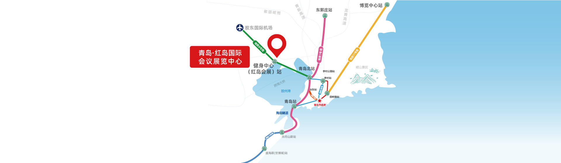 - (市內四區,青島主城區路線):市南區/市北區/嶗山區/李滄區-跨海大橋紅島接線/膠州灣高速-岙東路-火炬路-紅島展館貨車停放區